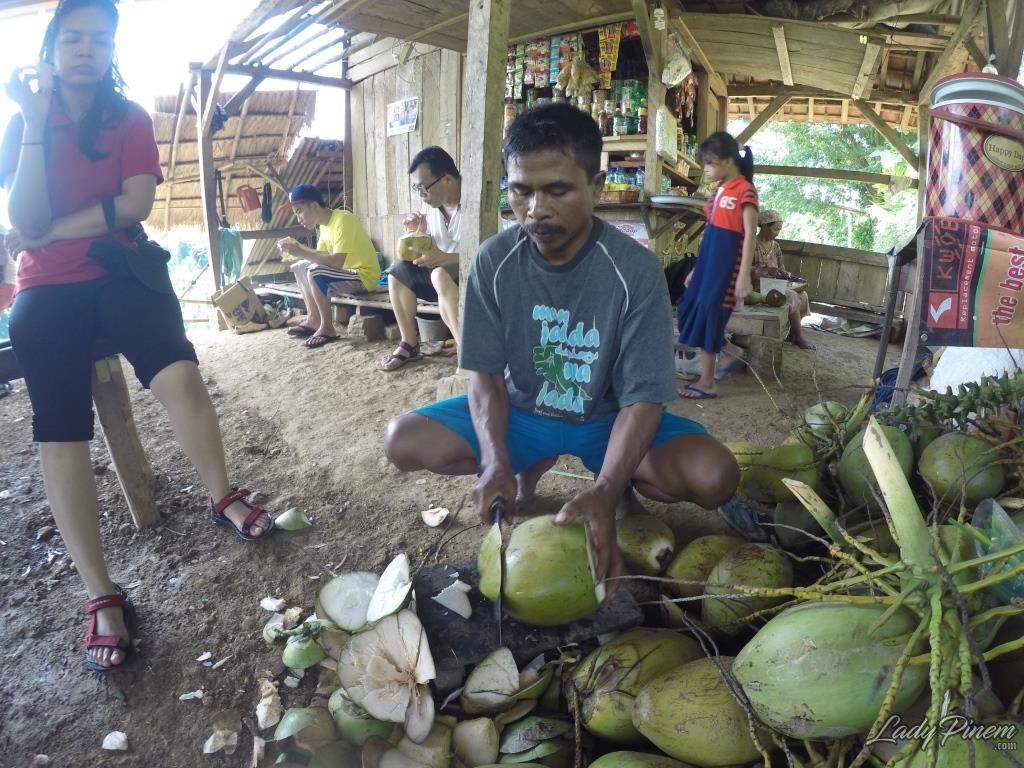 Sambil mengganjal perut dengan gorengan kami pun duduk sejenak untuk memulihkan sedikit tenaga. Air kelapa di sini juga manis dan gorengan juga lumayan enak.