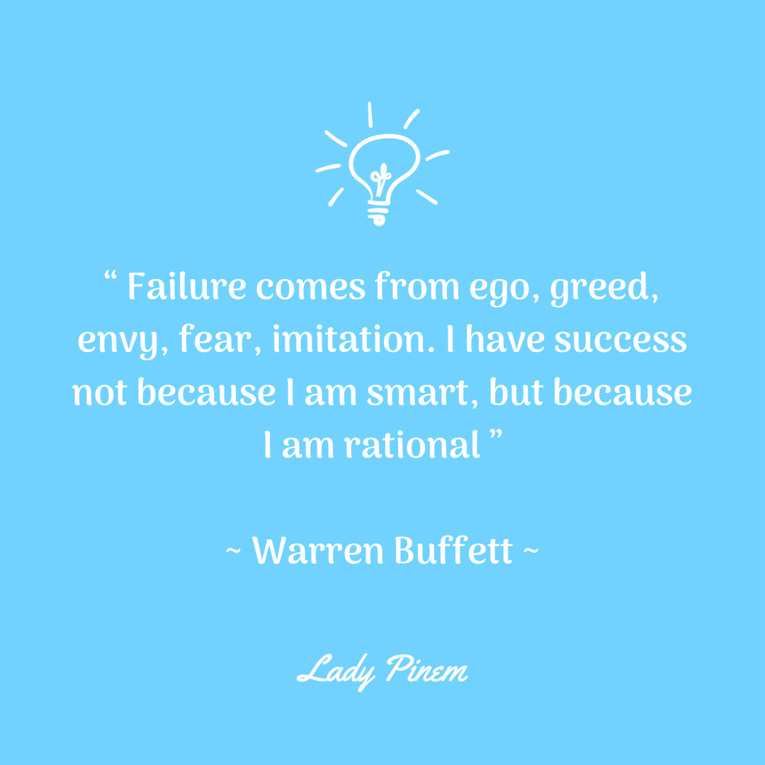 Kegagalan berasal dari ego, keserakahan, rasa dengki, tiruan. Aku sukses bukan karena aku cerdas melainkan karena aku rasional.
