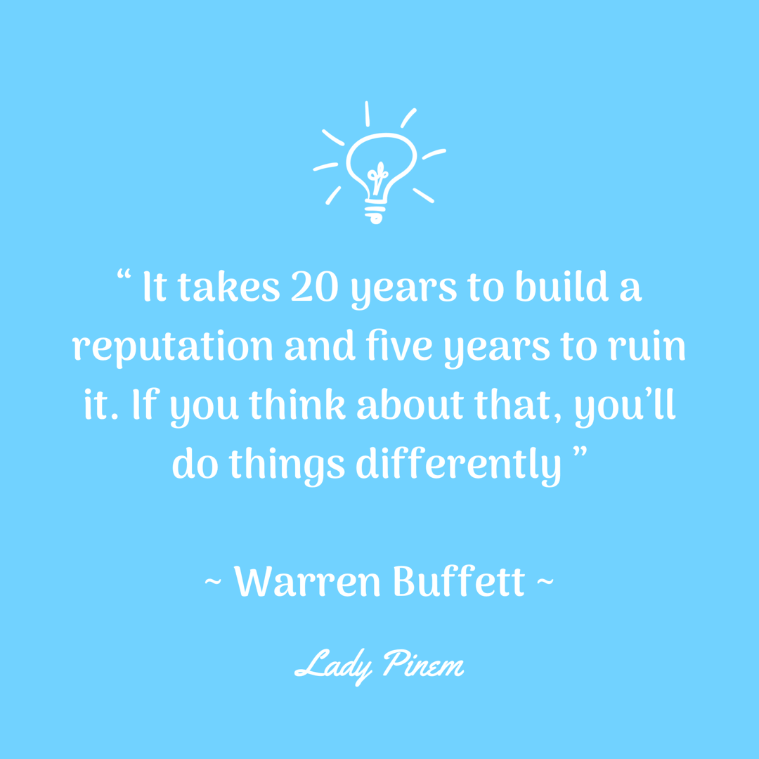 Butuh waktu 20 tahun untuk membangun reputasi yang baik dan hanya lima menit untuk menghancurkannya. Jika kamu memikirkan hal ini maka dalam hal apapun kamu akan bertindak hati-hati dan berbeda.