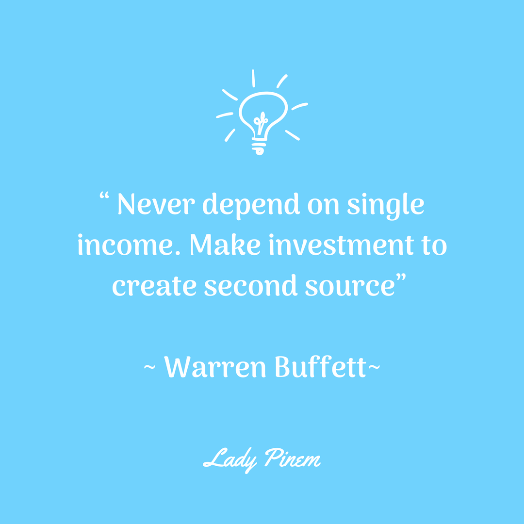 Jangan pernah bergantung pada satu sumber pendapatan. Miliki investasi demi menghasilkan sumber pendapatan lainnya.