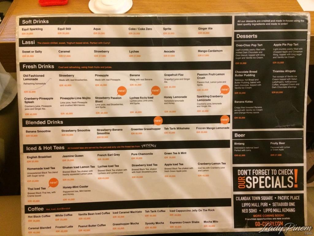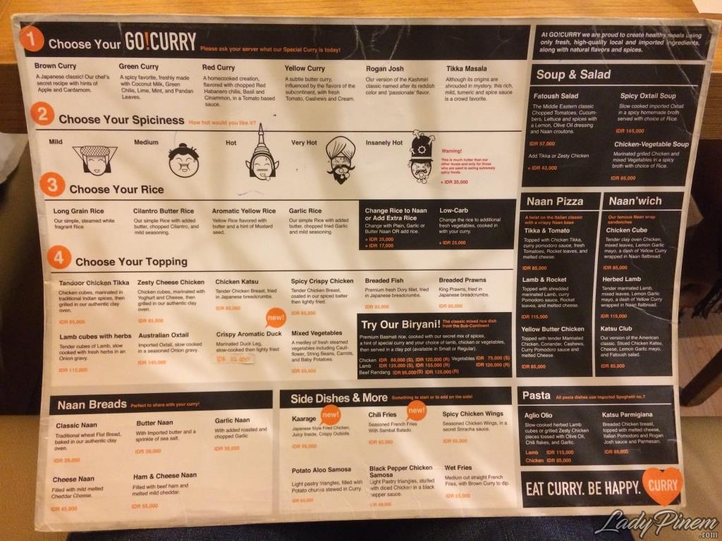 Memang bisa dikatakan untuk menikmati nasi kari di sini harga yang dikenakan cukup mahal namun porsi yang disajikan juga cukup besar dan kamu pasti kenyang. Menu yang ada di Go! Curry sangat cocok dinikmati pada jam makan siang ataupun makan malam. Tempatnya bersih dan suasana juga nyaman.
